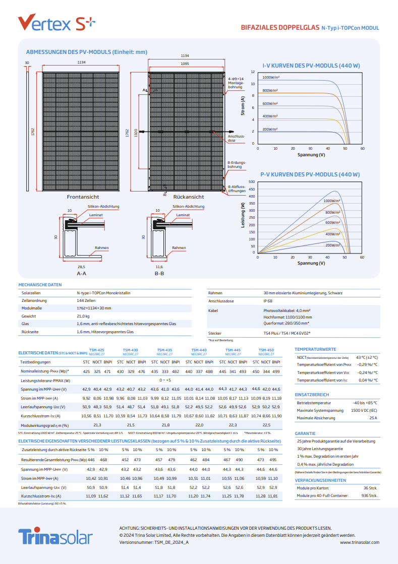 Üblicherweise verwendete Modulleistung (W): 320 bis 540+