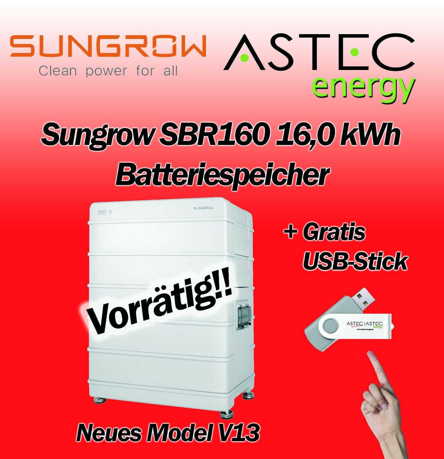Sungrow SBR160 16,0KW Batteriespeicher Paket Stromspeicher Model V13 GRATIS USB