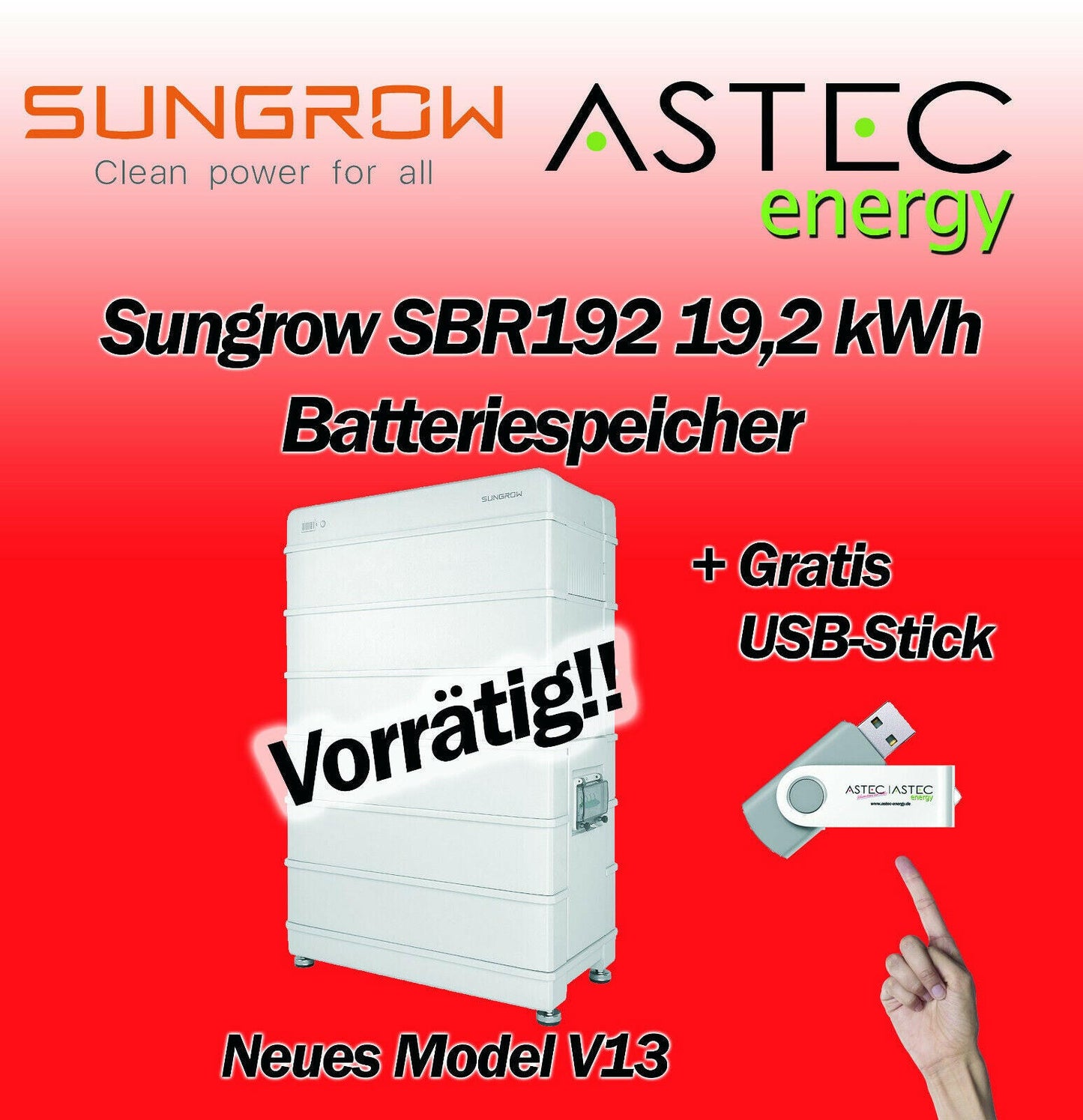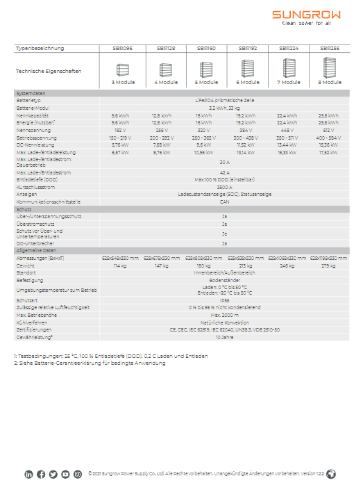 Sungrow SBR192 19,2KW Batteriespeicher Paket Stromspeicher Model V13 GRATIS USB