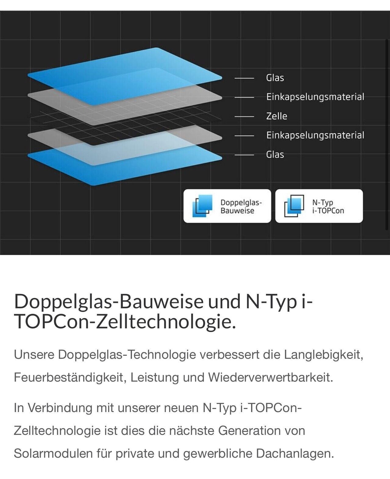 Modulwirkungsgrad größer 22% durch hocheffiziente n-Typ TOPcon Technologie